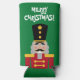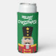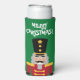 Christmas party nutcracker custom slim Seltzer Can Cooler for Holiday season. Fun toy soldier Holiday design with custom greeting.