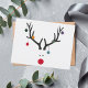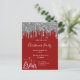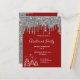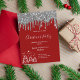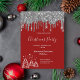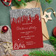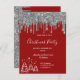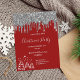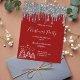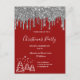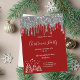 Classic red background, with faux silver glitter drips and white winter Christmas trees as decor. With the text: Christmas Party written with modern and trendy large hand lettered style script. Personalise and add your party information.