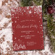 Classic red background, with faux silver glitter dust and white winter Christmas trees as decor. With the text: Christmas Party written with modern and trendy large hand lettered style script. Personalise and add your party information.