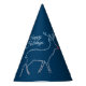 Christmas Party Reindeer Blue Sky Shiny Stars Party Hat. Unique, beautiful, stylish design. Easy to be personalised. Font style, size and colours can be changed. Matching items are available.