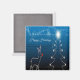 Christmas Party Reindeer Tree Blue Sky Shiny Stars magnet. Unique, beautiful, stylish design. Easy to be personalised. Font style, size and colours can be changed. Matching items are available.