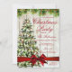 Christmas Party | Rustic Tree, Lights & Red Ribbon Invitation