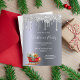 Faux silver foil as background, with faux silver drips and a vintage red Santa Claus sleigh filled with gifts as decor. With the text: Christmas Party written with modern and trendy large hand lettered style script. Templates for your party information.