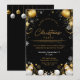 Invite guests to a festive black and gold Christmas gathering with this invite featuring snowflakes, sparkles, stars and snowmen. Perfect for festive holiday gatherings and December events. Customise easily with your party information.