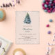 A winter invitations for a Christmas party. A frosted background on the front decorated with a watercolored hand-drawn pine tree with snow and faux sparkling glitter. Personalise and add your party details.