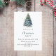 A winter invitations for a Christmas party. A white background on the front decorated with a watercolored hand-drawn pine tree with snow. Personalise and add your party details.