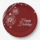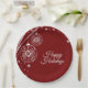 Christmas Party White Ornaments Stars Red Elegant Paper Plates. Unique, beautiful, stylish design. Easy to be personalised. Font style, size and colours can be changed. Matching items are available.