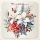 Christmas Party White Red Flowers Holidays Elegant Square Paper Coaster