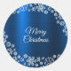 Christmas Party White Snowflakes Nave Blue Classic Round Sticker