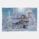 Christmas Party Winter White Snowman Blue Rustic Tea Towel