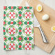 Cute and festive Christmas kitchen towel with a traditional style patchwork quilt design in red and green