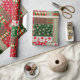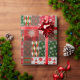 This patchwork-style wrapping paper is designed for the holiday season. The design consists of various rectangular and square segments, each featuring different holiday-themed patterns. The wrapping paper combines these patterns to create a cohesive, cheerful, and visually appealing design, perfect for wrapping gifts during the holiday season.