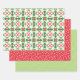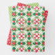 Presents under the tree Christmas patchwork quilt gift wrapping paper in traditional red and green. One each of 3 different patterns 1) quilt, 2) snowflakes, 3) candy stripe in apple green. Folksy, traditional and so cute for those special holiday gifts.