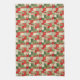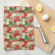 A hodge-podge of Christmas elements, including Santa Claus, holly, and snowflakes in red, green, and white makes a cute kitchen towel that is perfect for the the holidays.
