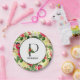 Christmas Pattern Monogram Initial P Personalized Paper Plate