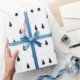 An elegant wrapping paper featuring stylish Christmas and winter holiday season pattern of spruce trees and snow in winter. Decorative black images against the white background. Good to wrap up your Christmas, New Year, birthday, and other gifts. This design is customisable. You can change the image. You can transfer the design to another product. If you want to relocate the image, adjust it to a shape of a chosen product, to add some text, please, use the "Edit Design" or "Personalise" (as the case may be) button of the blue colour. It will transfer you to the "Design Tool" where you can do all the customisation. Just be creative, customise and buy one, enjoy, and be happy.
