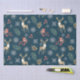 Christmas Pattern With Deer & Bullfinches Blue Tissue Paper