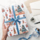 Cosy Christmas pattern with nutcrackers, drums, and Christmas trees on white.