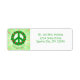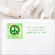 A cool and pretty Christmas address label with a green wreath in the shape of a peace sign decorated with little red hearts.