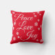 Decorate the home with Peace Love and Joy this Christmas with this classic modern white snowflake design throw pillow.  Modern PEACE LOVE JOY in white script typography with white snowflakes and holiday red background.  Please email me if you would like to make some design changes  designsbykatz@gmail.com  Happy Holidays!