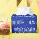 White PEACE ON EARTH text with snowflakes on a blue background.
