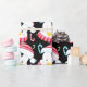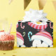 A festive and cute Christmas holiday pattern featuring graphics of the face of a penguin wearing a striped hat and winter scarf. He is surrounded by pretty red and white and green and white candy cane treats on a black background that may be changed to any colour of your choice.