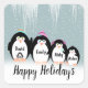 Cute Happy Holidays penguin family of 5 with icicles and personalised names in snowflakes.