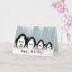 Cute Happy Holidays penguin family of 5 with icicles and personalised names in snowflakes.