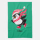 Christmas Penguin in a Hat and Scarf on Skates Tea Towel