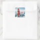 Cute penguin wearing a red cap and scarf perched on an iceberg with a Merry Christmas sign in Antarctica.