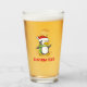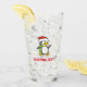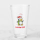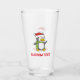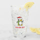 A little penguin cartoon with santa hat and green scarf walking on snow.