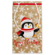 Christmas penguin with bell and snow on paper bag look