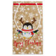 Christmas penguin with lights and snow on paper bag look