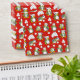 Seamless cute and happy little penguins cartoon background wearing santa hats and scarfs and playing with snowballs.