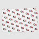 Repeating pattern of a photograph of a stuffed toy penguin dressed in a Christmas Santa hat and with a green scarf