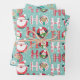 Christmas Penguins, Snowmen, Santa on Green Wrapping Paper Sheet