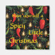 Festive red and green chilli peppers with evergreen sprigs and glowing Christmas lights make up the design, with text "Have yourself a spicy little Christmas." Show some fiesta spirit with your holiday decor, and Feliz Navidad!