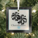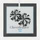 This glass ornament is shown in a square size with a fun pom poms and text of "cheerleader" on the front. Multi colour of black, white and silver, grey and sky blue. Personalise with text of name and date. Customise this item with this template or buy as shown.