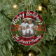 Christmas personalised photo red plaid pinecones ceramic tree decoration