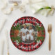 Christmas personalised photo red plaid pinecones paper plate
