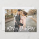 Modern Brush Script Merry Christmas Couple Photo Card - New Mr. and Mrs.