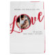 This design features a merry Christmas cute calligraphy script gift bag with a love calligraphy script lettering, family photo picture template, a red and white typography design, stylish trendy calligraphy script font, Christmas holiday wrapping supplies, custom customised gift message greeting, Christmas holiday paper gift packaging, simplistic party favour gift packaging, classic classy traditional winter design
