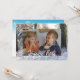 Christmas Photo Card Joyeux Noël with pretty snowy tree background. Feel free to switch the background picture if you like. Also upload your favourite holiday family picture. The back is blue with white snowflakes with your own personalised holiday season message.
