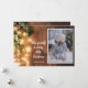Rustic Christmas card with your favourite photo. Wood, lights and Christmas Holly card, easy to personalise with your message and name.