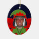 Funny Christmas photo ornament featuring elf illustration designed to include your own sweet selfie. Add photo and name to personalise.
