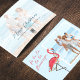 This design features a Christmas holiday photo cute lights photo card, with a whimsical fun festive blue pink, a stylish calligraphy script typography, a beach tropical vacation pink flamingo theme, with a unique watercolor blue creative cute, a two 2 landscape vertical photo, a family picture simple template, a Christmas holiday vacation photo card, great for coastal ocean trip vacation photos, whimsy pink flamingo animal bird with a transparent vellum photo overlay on the backside.