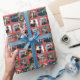 Red lined, christmas gift wrap with 9 photographs! Mistletoe, christmas trees, and christmas bulbs. The centre photograph is the largest and is surrounded by a blue frame. This is a really hot look. Pattern repeats with the 9 photographs. Use the personalise prompt to download. Love! Design by HAMbyWhiteGlove aka HAMbyWG