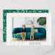 A modern look for a holiday photo card. A gold foil word - joy is on top of the photo and holiday greeting. Botanical leaves are included on the back.