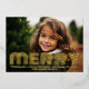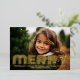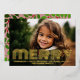 A modern look for a holiday photo card. A gold foil word - merry - is on top of the photo and holiday greeting. Botanical leaves are included on the back.