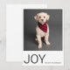 Share pure holiday JOY with this modern Polaroid-style photo Christmas card, perfect for families who love clean minimal design—and especially ideal for pet lovers! Featuring a bold “JOY” caption, customizable family name, and your favorite photo (pets, kids, or family), this card brings a fresh, contemporary look to your holiday mail.
